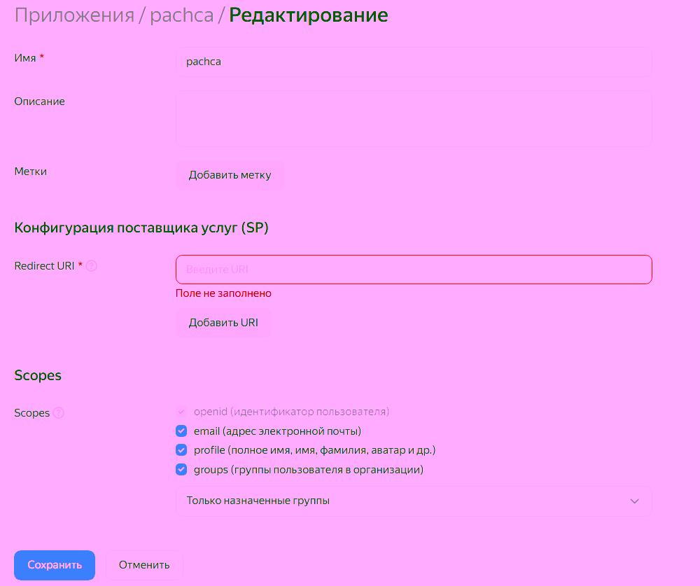 Включите scope "groups" для передачи в Пачку групп пользователя, которые будут импортированы как теги сотрудника.