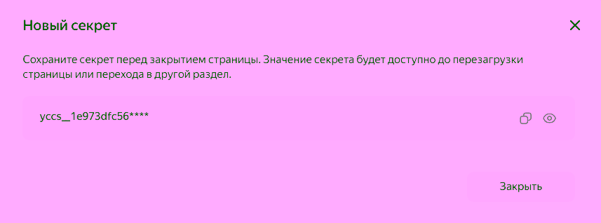 • Сохраните значение секрета — после обновления страницы оно будет недоступно.